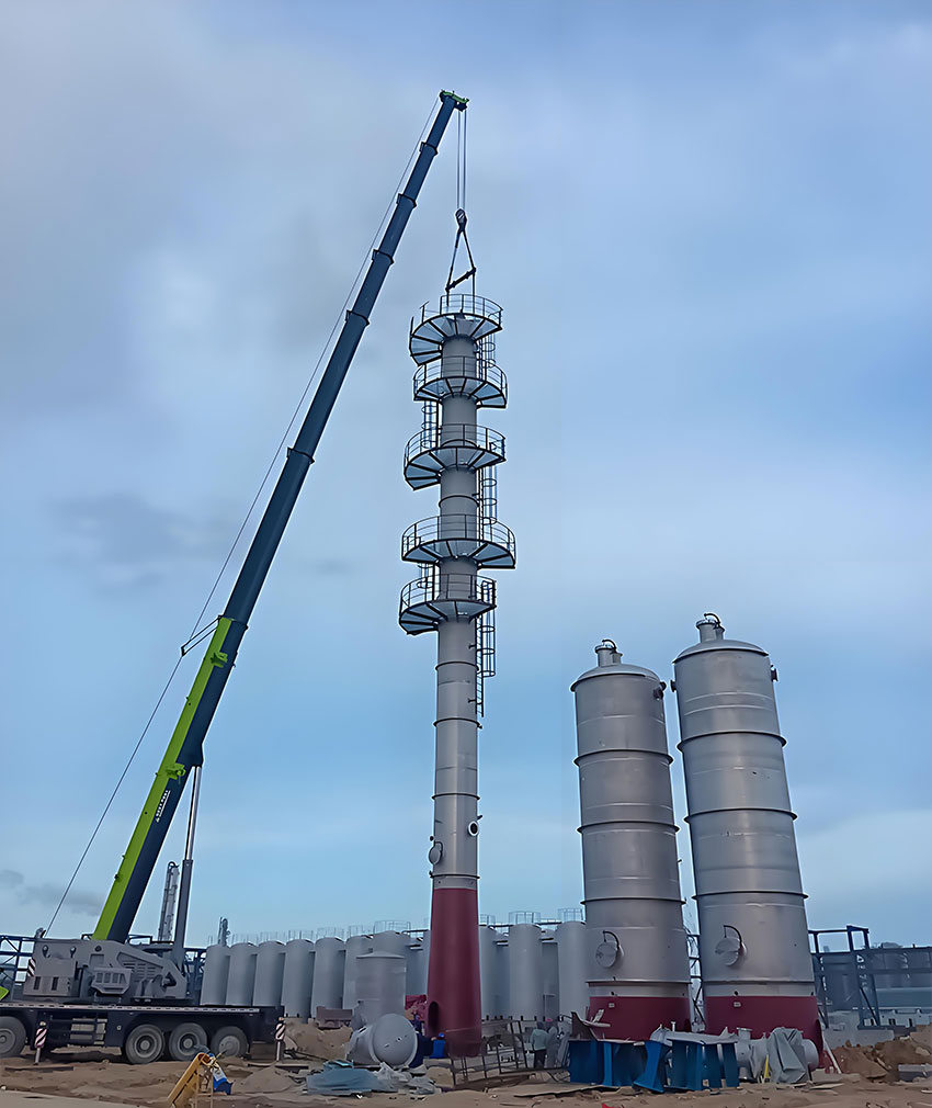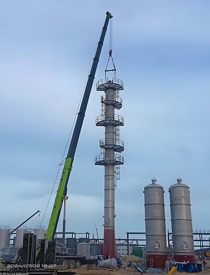2024年7月2日,由廣東中科天元新能源科技有限公司承建的福建百宏8萬噸/年無水乙醇成套裝置建設(shè)項(xiàng)目中的關(guān)鍵設(shè)備——濃縮塔成功吊裝。
